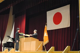 〈卒業証書を受け取る小原君)