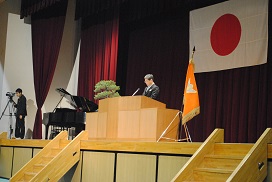 〈式辞を述べる平野学校長〉
