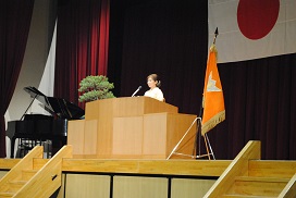 〈PTA会長、片岡さんの祝辞〉