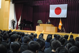 平野学校長は式辞の中で、新入生に対し期待することとして