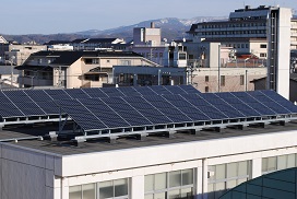 11月から設置工事を行っていた、太陽光発電設備がこのほど完成し、稼働を始めました。パネルは管理棟の屋上に設置され、ここで発電した電気は自動的に学校内の電力として消費されていきます。