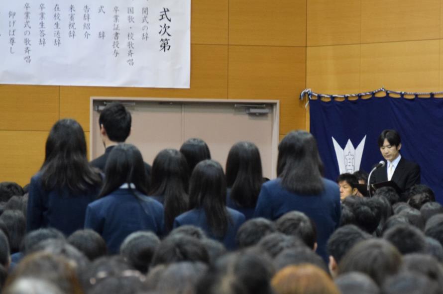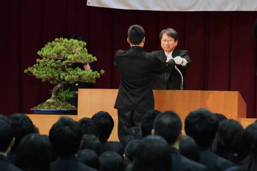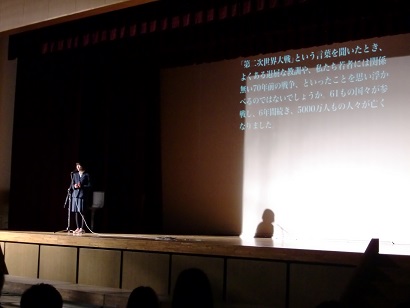 (右)ESS:県の英語スピーチコンテストで第2位を獲得した2年生によるスピーチ。堂々として大変立派でした。