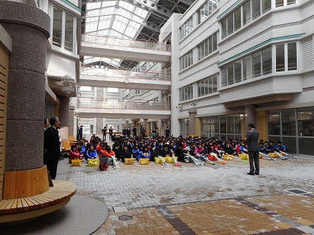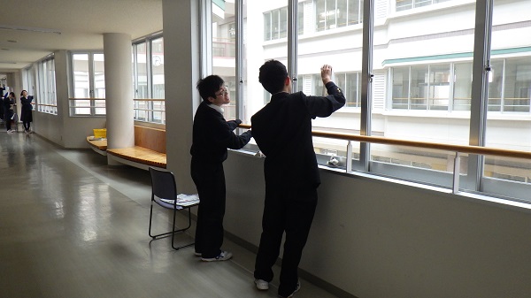 (右)化学部:代々続く犀川水系の調査結果を簡潔に述べました。我々の環境に対する意識は向上しているとのことでした。