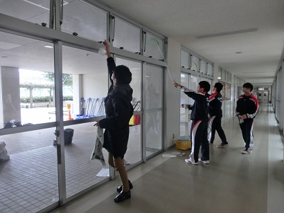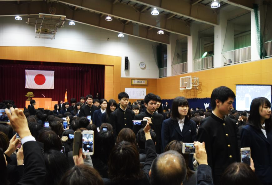 (左)生徒会有志:観客の声援に後押しされ、とびきりの笑顔を見せました!