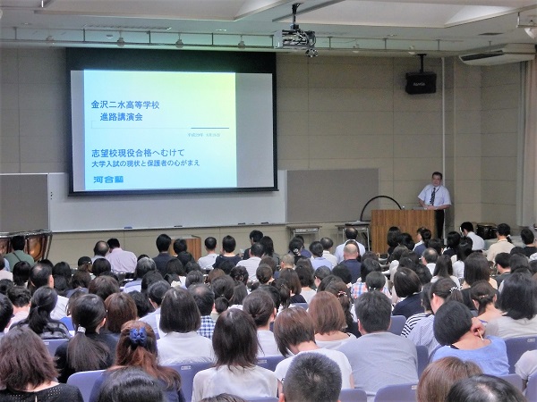 その後、河合塾講師からの「志望校現役合格へ向けて」と題して、大学入試の現状と保護者の心がまえについてお話しいただきました。