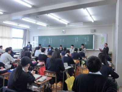 代表4名の発表の後、参観に来てくださった京都大学の方々から講評をいただきました。温かい助言や講評の後、改めて、哲学ってなんだ?という話を聞き、生徒達は熱心に聞き入っていました。