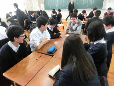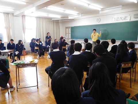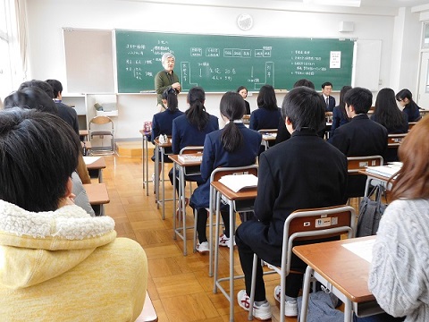 「寛容・不寛容・信頼」のテーマで講義を受けました。生徒達は課題として、先生の著書を読んできており、メモをとりながら熱心に聞き入っていました。