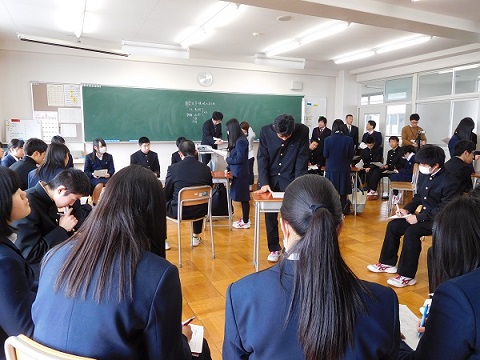 などの熱い応援のメッセージに、生徒たちもメモを取りながら真剣に聴いていました。