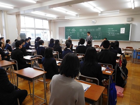 今年度の本校卒業生が、6限目には1年生の全クラス、7限目には2年生の全クラスに向かい、受験を終えて感じたことや後輩へのアドバイスを話してくれました。