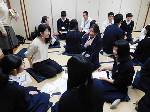 生徒達は経験を積んでおり、積極的に発言をする姿が多く見られました。中には、ファシリテーターの大学院生と熱く議論する生徒もおり、水谷先生からお褒めの言葉をいただきました。