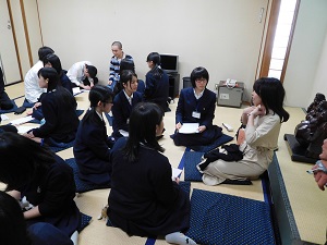 4人ずつのグループに分かれて、自由に話していただいたので、高校生達も積極的にあれこれ質問をして、大変盛り上がりました。まだまだ話を聞き足りない感じでしたが、予定時間をかなり超えて、会を終えました。