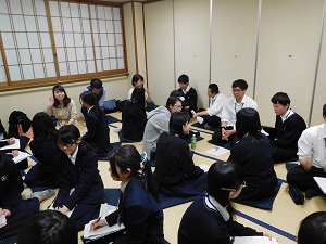 3月30日(木) 哲学の講義を終えて、宿舎に戻り、夕食後、京都大学で学ぶ先輩達をお招きして、京都大学での生活や合格に向けての学習方法などを話していただきました。