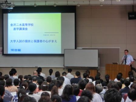 その後、河合塾講師からの進路講話が開かれ、大学入試の現状と保護者の心がまえについてお話しいただきました。