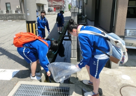 (二水生らしく真摯な態度でごみ拾いに取り組んでいました)