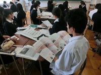 生徒たちは、いろんな立場に立ってグループ内で意見を交換し、発表することで