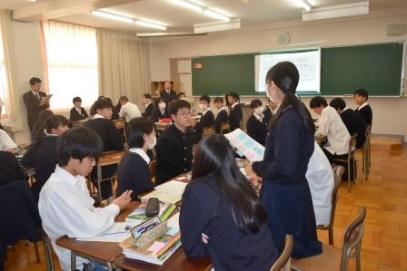 生徒たちは、大勢の先生方が見学する中、一生懸命に授業に取り組んでいました。