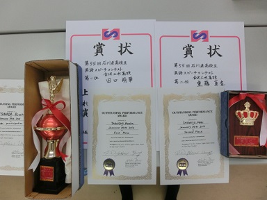 1月24日に開催された「第54回石川県高校生英語スピーチコンテスト」では、本校の田口さんが1位、重藤さんが2位の素晴らしい成績でした。
