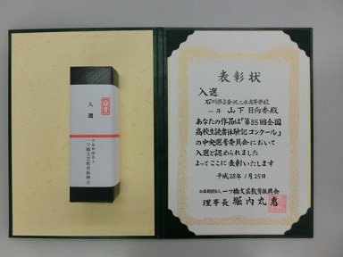 「第35回全国高校生読書体験記コンクール」で108Hの山下さんの作品が入選しました。