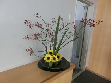 (正面玄関の生け花)
