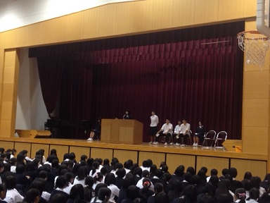 本校スクールカウンセラーの辻先生が、「ストレスと上手につきあうために~ストレスマネジメント~」というテーマでお話しくださいました。「ストレスは、なければいいというものではない」「視点を変えてみたり、自分の思いこみに気づいたりすることで、ストレスを上手に扱うことができる」などのお話や、腹式呼吸を取り入れた漸進的筋弛緩法の体験は、これからの生活にすぐ活かせるものでした。