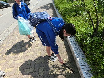 第21回二水アクトが5月22日(金)に行われました。当日は晴天に恵まれ、1年生は東山河岸緑地公園(金沢城公園経由)・東山茶屋街の散策、2年生は額谷ふれあい公園(大乗寺丘陵公園経由)・高尾丘陵地域の散策、3年生は大和町広場(市民芸術村)・犀川河川散策を行い、昼食を済ませた後、各クラスごとに決められた区域に分かれてゴミ拾いボランティアに取り組みました。学校に帰ってからは拾ったゴミを分別した後、PTAの方々が準備してくれたお茶とめった汁に舌鼓を打ち、活動の達成感を味わいました。