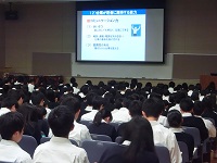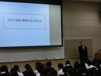 2018年6月20日 12時43分6月20日(水)の1年生の総合的な学習の時間で、「目指せ!クリエイティブ人材」の一環として、14の企業・官公庁の方による講演会を行いました。講演会の前半では、担当の方よりその職業の内容とやりがいを、資料やプレゼンテーションソフトなどを使ってお話ししていただきました。