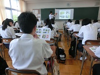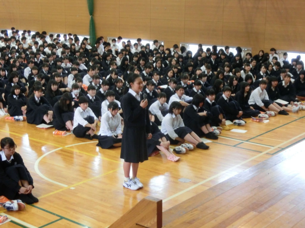 講演会の後半は「私の提言」と題して、各企業・官公庁の様々な取り組みがSDGs(Sustainable Development Goals 世界を変えるための17の目標)とどのように関連していると考えるか、また、自分がその職に就いたとしたらどのようなことで社会貢献したいと思うかの提言を行いました。地元の企業・官公庁が世界的な問題を解決するためにどのようなことに取り組んでいるのか、自分はどのように社会に参加していけるのかを生徒達は、緊張しながらも熱心に提言していました。