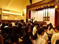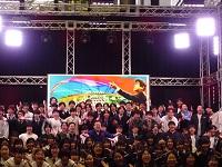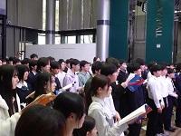 一昨年度、サントリー1万人の第九に招待されて大阪城ホールで歌ってきたご縁で、MRO北陸放送から大阪万博1万人の第九にも参加してもらえないかとオファーを受け、万博初日に新2,3年生の部員が招待されて前日の練習会と当日の本番に参加しました。前日の練習会では各地域のMBS放送系列のテレビ局が招待した高校生の合唱団中心で、各県の強豪校も参加していて、県外のレベルの高い学校と一緒に練習することで大きな刺激をもらったようでした。同行したMROの久々江アナウンサーからインタビューを受けたりもしました。