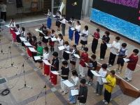 今日はお昼休みにガレリアで総体総文の応援ステージを披露させていただきました。明日は二水ACTがあり、早い部は明後日から大会が行われるということで、先週金曜日に中間考査が終わったばかりでしたが金土でなんとか仕上げて無事演奏することができました。慌ただしい中ではありましたが、1年生も交えた初ステージ、楽しんで歌えたと思います。