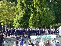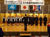 9月16日にホテル日航金沢で開催された第78回国民スポーツ大会第23回全国障害者スポーツ大会石川県選手団結団壮行式の冒頭で「石川県民の歌」と「若い力」をアカペラで演奏させていただきました。立ち位置の確認の際には県知事から直接「頑張って」と声をかけられ、直前までいろいろとトラブルもありましたが無事歌いきることができました。今日をもって3年生と同じステージで歌のは定演を除くと最後になります。3年生のおかげでなんとかここまでやってこれました。本当にありがとう。3年生が抜けると大きく人数が減ってしまうので(特に女声)、1,2生で今からでも思い出たくさん作りたい人、一生に1度の高校生活もっと楽しみたい人はぜひ合唱部へお越しください。