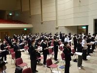 11月11日(木)~12日(金)にかけて、美川文化会館アクアで開催された秋季合唱講習会に参加しました。12月19日(日)に開催される石川ユースコーラスコンサートのための練習と、県下の高校合唱活動を振興するためにリーダー育成を目指し、お互いの能力・技術の向上を図るために、毎年新人戦のこの時期に行われています。特に今年はコロナ禍で、これまでの高文連の行事はすべて音源収録・提出だったため、1年生にとっては初めて、2年生にとっても1年ぶりくらいに他校の生徒と交流を持つ機会となりました。講師の先生からはもちろん、他校の生徒からもたくさん刺激を受けて、大変有意義な学びとなりました。今回学んだことを持ち帰り、12月のコンサート成功に向けて一丸となって頑張りたいと思います。
