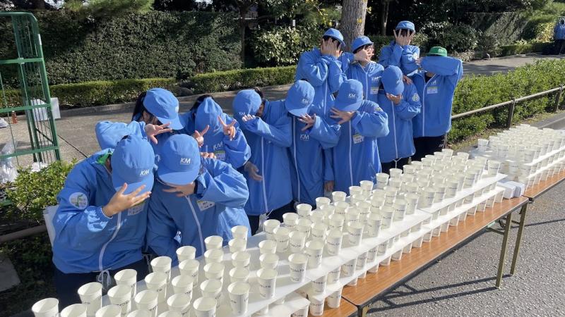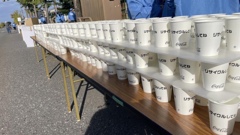 雨が心配されていましたが、当日は晴れ!集合時間は早かったのですが、全員遅れることなく集まり、準備開始。今年は給水係としてランナーの方に水を配りました。