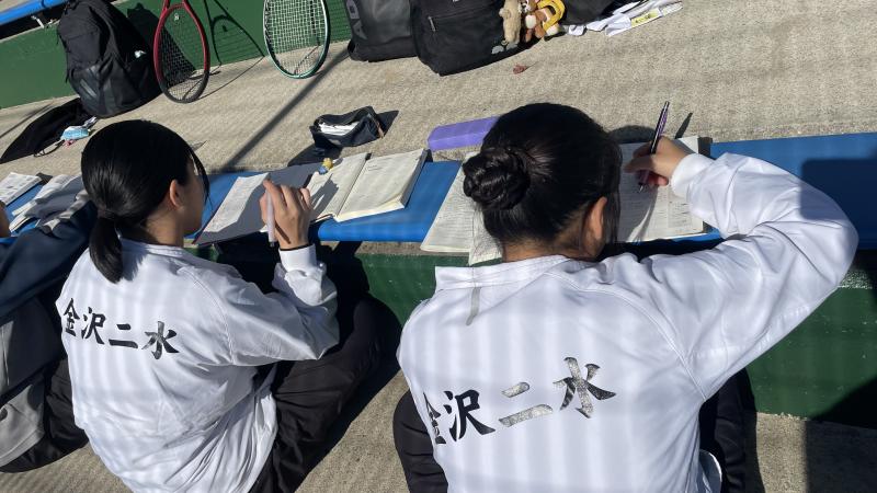 応援の様子 空き時間には勉強