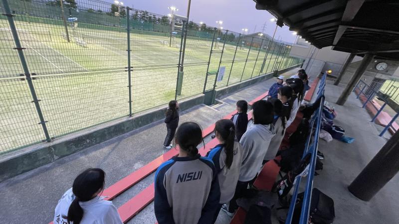 豊後企画テニスコートにて公式練習を行いました。県外の高校とも打ち合うことができ、充実した練習となりました。