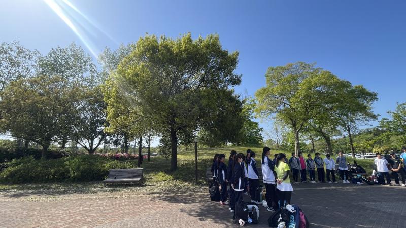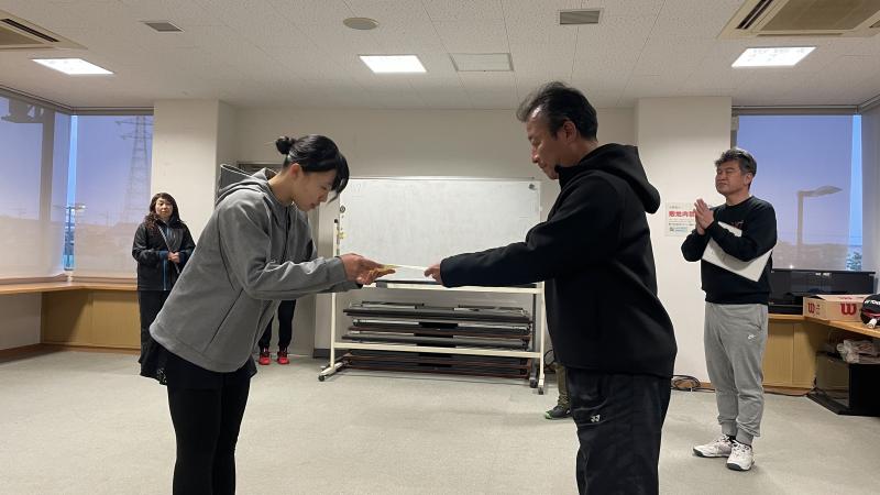 福岡県の新門司港に到着後、コートを借りて練習をしました。休みながら4時間ほど体を動かすことができました。