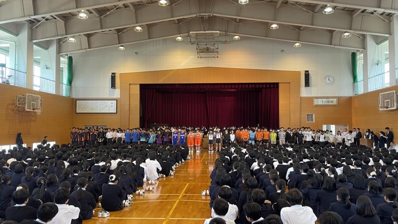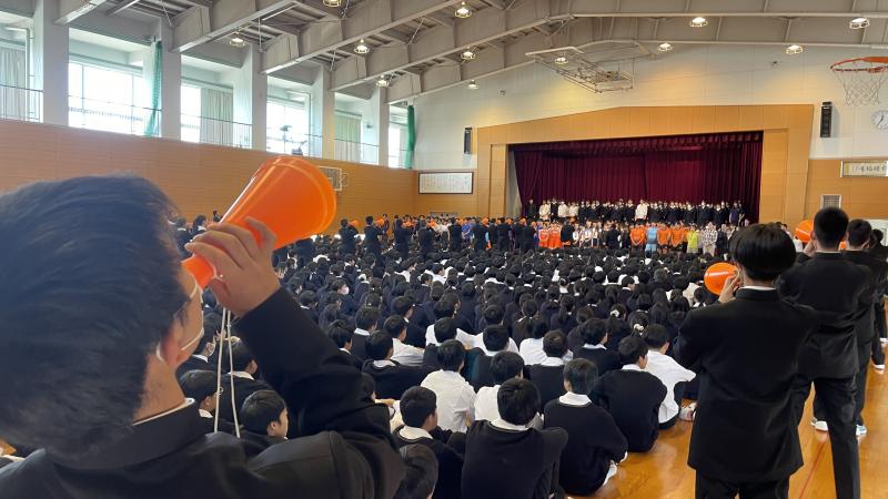J:COMホルトホール大分で開会式が行われました。他校の選手を見て、生徒は少し緊張気味でしたが開会式がはじまるとリラックスした様子でした。