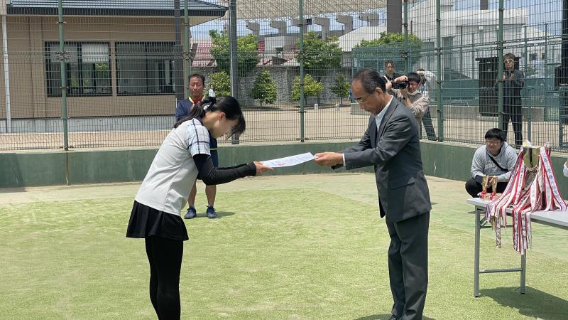今回、二水高校初のインターハイ団体出場を果たすことができました。うまくいかない時や辛いときもくじけることなく日々の練習に取り組んできた生徒たちは本当に素晴らしいです。技術面はもちろん、礼儀や集団行動など、人間性もテニスを通じて大きく成長できたと思います。また、多くの方のご支援と応援があったからこそ、この舞台に立つことができました。この場を借りて感謝申し上げます。来年もインターハイに出場するために、日々の練習に励んでいきます。