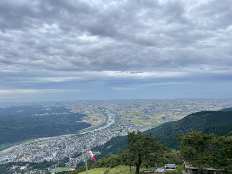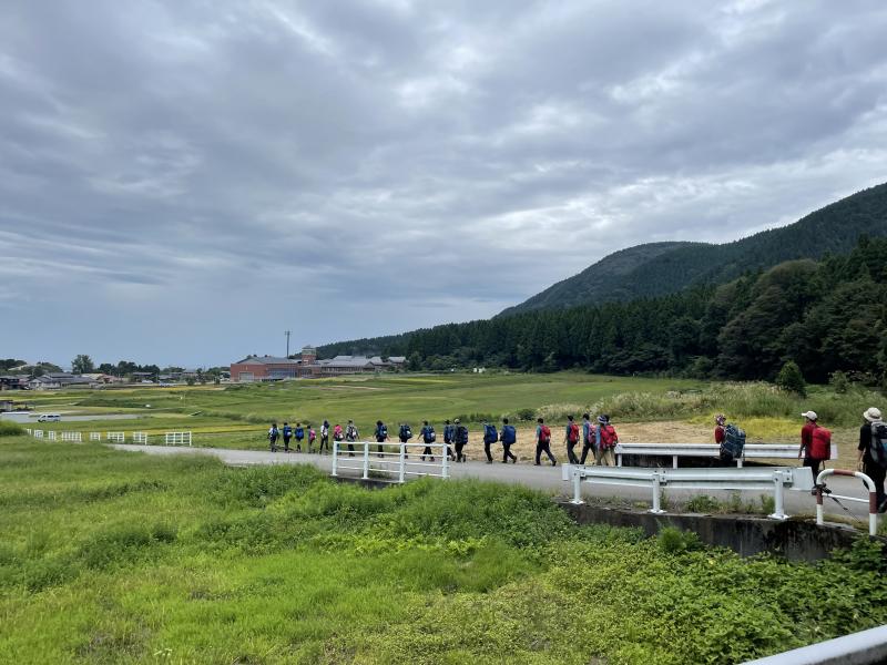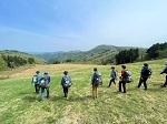 空模様が心配されていましたが、登山活動中は雨にあたることはありませんでした。男女とも、隊行動(ほかの学校と一緒になって登山を行う行動)では、全体のペースから遅れることなく歩くことができました。スズメバチの発生によってルートが変更になり、御堂山の後に奥獅子吼山ではなくスカイ獅子吼に向かいました。日ごろの練習登山では奥獅子吼山には何度も登りましたが、スカイ獅子吼は今回が初めて。展望台に上ると眼下には扇状地が広がっており、生徒たちはそんな景色に気分をリフレッシュさせていました。