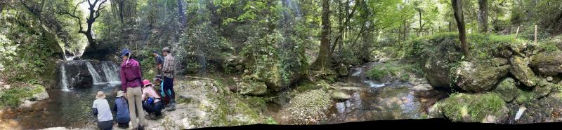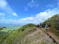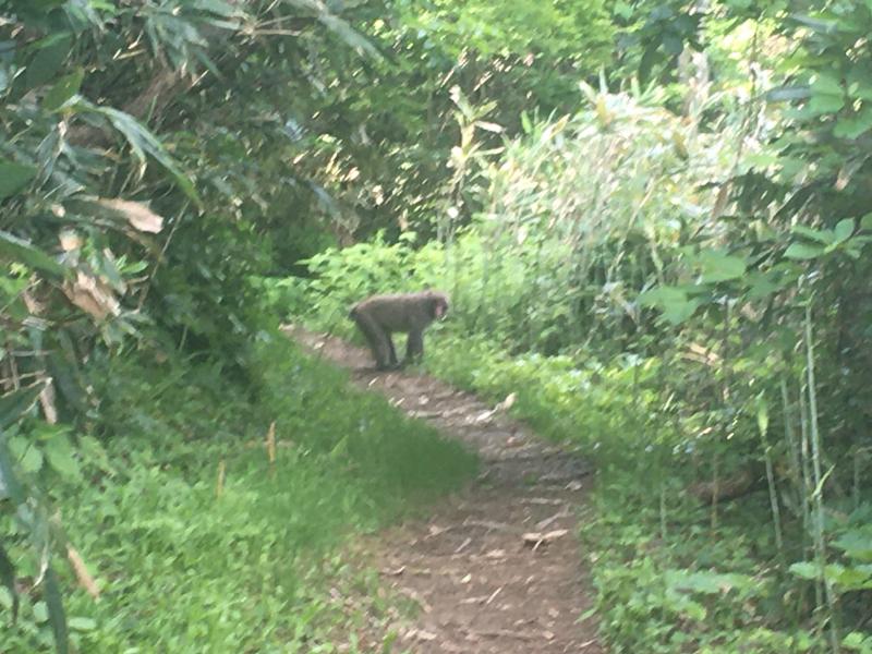 順調に登っていると…御堂山をすぎたあたりで大きな猿と子猿の計4匹に遭遇!大きな猿がこちらに向かってくるように歩いてきたため、いったん引き返し、顧問が再び確認しにいくと登山道の真ん中に座り、こちらを見ていました。その後、もう一度引き返してから顧問が様子見に行くと今度は茂みの中からこちらの様子をうかがっていました。あまり人を恐れていない様子と体の大きさから、襲われる可能性があったため引き返すことを決定。予定よりも早く帰路につきました。今回のようなことは稀ですが、今後も安全を最優先に登山を行っていきます。