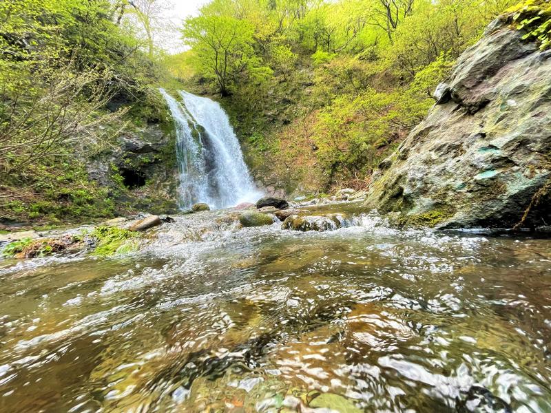 鈴ヶ岳登山のため、登山道の横にある駐車場に向け走っていると対向車が来ました。「こんな時間に下山者がいるなんて珍しいな」と思っていると、私の車の横で停止し、運転手の男性から「登山道の入り口に熊がいるから気をつけて」との情報がありました。すぐに鈴ヶ岳登山を中止にし、鞍掛山登山に変更。鞍掛山は多くの登山ルートがあり、短時間で登れるコースを選び登山開始。川沿いに進みながら急登を登り、無事に山頂に行けました。山頂付近の避難小屋あたりには多くの登山者がおり、にぎわっていました。獅子岩や鶴ヶ滝に立ち寄ることもできたので充実した登山になりました。