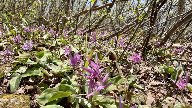 今年度初登山ということもあり、少しゆっくりとしたペースで登り始めました。周りには色とりどりの花やフキノトウが咲き、小鳥のさえずる声を聴きながら順調に進むことができ、予定よりも早く山頂につくことできました。帰りはスキー場の斜面を下り、無事大倉岳を周回することができました。