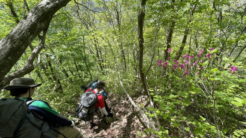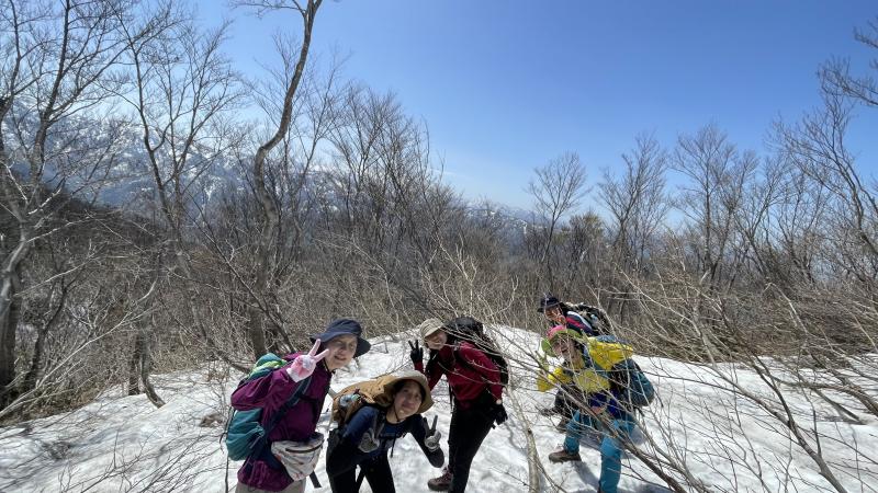 22日は起床後、朝食を作りそのまま口三方岳へ。上り初めに急登がありましたが、生徒たちは冬場のトレーニングのおかげで無事に登ることができました。多くの花が咲いており春の訪れを感じながらの登山となりましたが、半分ほど登ったあたりから残雪が現れ、一気に冬の装いに。山頂に向かうにつれ残雪が多くなってきたことから、登頂目前ではありましたが引き返すことを決め、下山を開始しました。下山後は河原で昼食を作り、無事に帰路につくことができました。