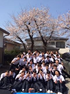春、道場横の桜の前で全員集合 緊張感のある練習風景 晴れた日は外で巻藁練習