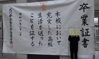 書道部1、2年生でジャンボ卒業証書を制作・展示しました。