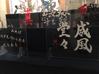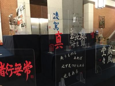 各校書道部員がしたためた数々のアクリル板作品。