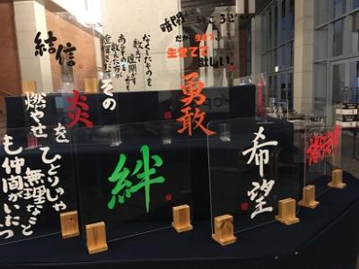 書道部員による大字作品とアクリル板作品が展示されました。