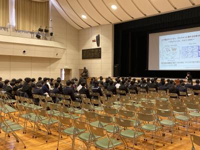 今年度は、金沢泉丘高校で実施されました。大学などからいらっしゃった先生方により、化学や生物など各分野に分かれて4つの講座が開かれました。金沢二水高校の物理部は、材料科学の講演を聞くことができました。大学で行われている最新の研究に触れ、刺激を受けることができたと思います。