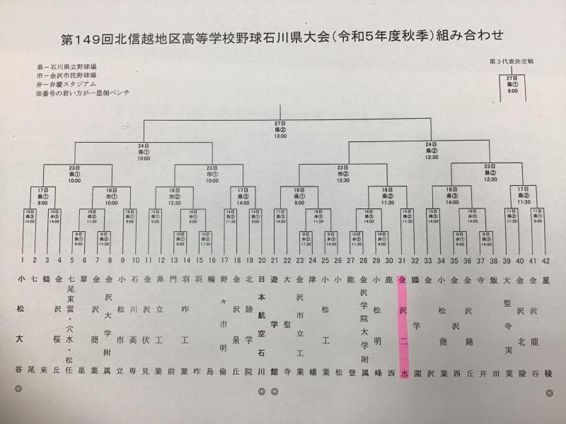 【第31回石川県高等学校野球一年生大会 予選】