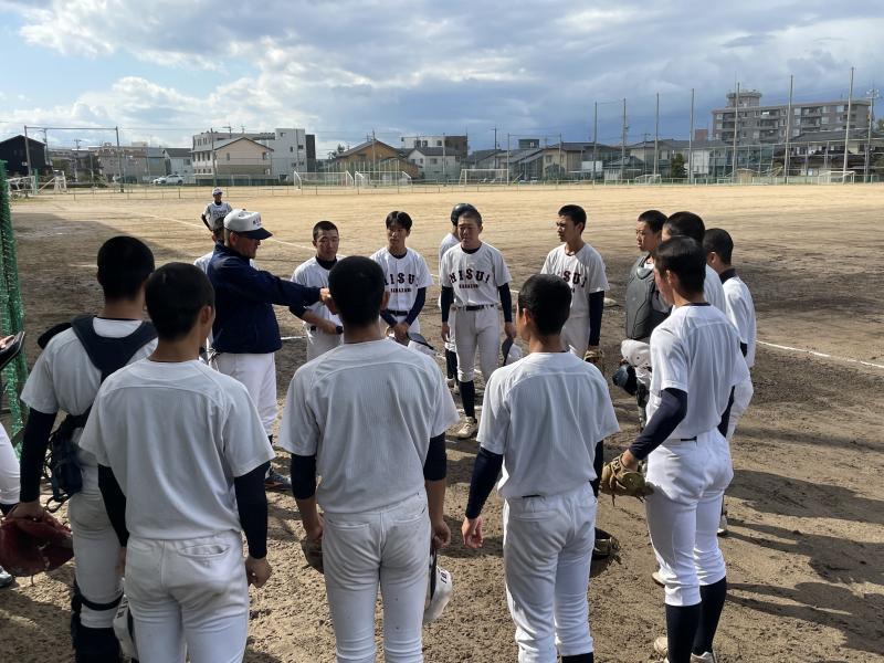 秋季大会ベスト8のチームにあと一歩及ばず勝利を手にすることができませんでした。「勝ちに不思議の勝ちあり、負けに不思議の負けなし」の言葉の通り負けたことには必ず原因があり、その原因を全員が理解して向き合い突き詰め、個の力を伸ばし、個人でも戦える力をつけなければなりません。夏までにやれることはまだまだたくさんあります。現状を受け止め、前を向いて最後に笑える準備をしていきます。そして二水野球のチームカラーを全開に出していきます。