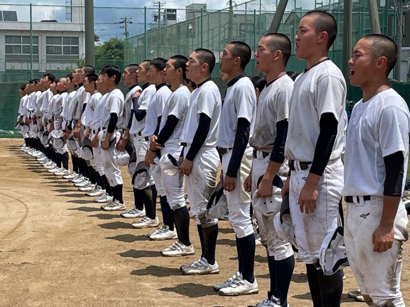 本番の舞台で実力を発揮し切れなかった悔しさを噛みしめ3年生の夏は、2回戦敗退となりました。試合後は3年生17名がそれそれの熱い思いを後輩に語り、新チームへと思いを託しました。3年生がコツコツと積み上げてきた二水野球部の土台は、今年もさらに大きくなって後輩に受け継がれていきます。また試合には悔しさの残る形で敗れてしまいましたが、3年生の勝負はまだ終わっていません。それぞれの進路実現に向けて、悔しさを糧にさらに粘り強く取り組み、1月の大勝負には必ず勝利します。